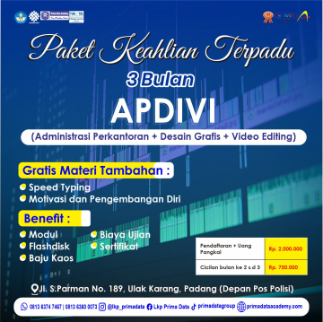 Kursus Paket 3 Bulan APDIVI (Aplikasi Perkantoran + Digital Marketing + Video Editing
