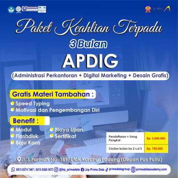 Kursus Komputer Paket 3 Bulan Jurusan APDIGI (Aplikasi Perkantoran + Desain Grafis + Digital Marketing)